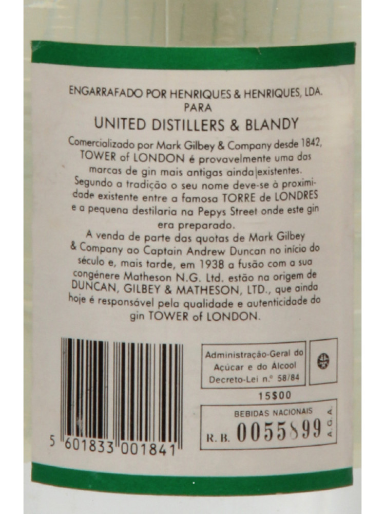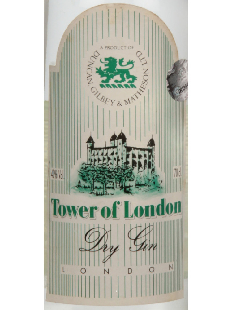 Tower of London é provavelmente uma das marcas de gin mais antigas ainda existentes. Segundo a tradição o seu nome deve-se à proximidade existente entre a famosa Torre de Londres e a pequena distilaria na Pepys Street onde este gin era preparado.