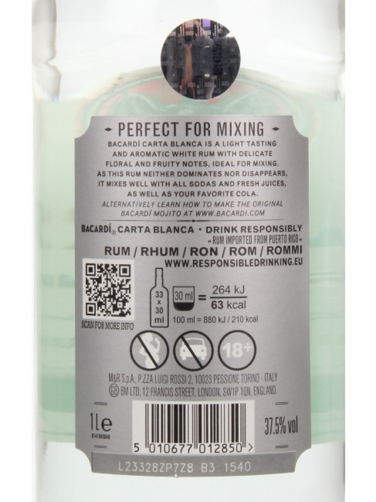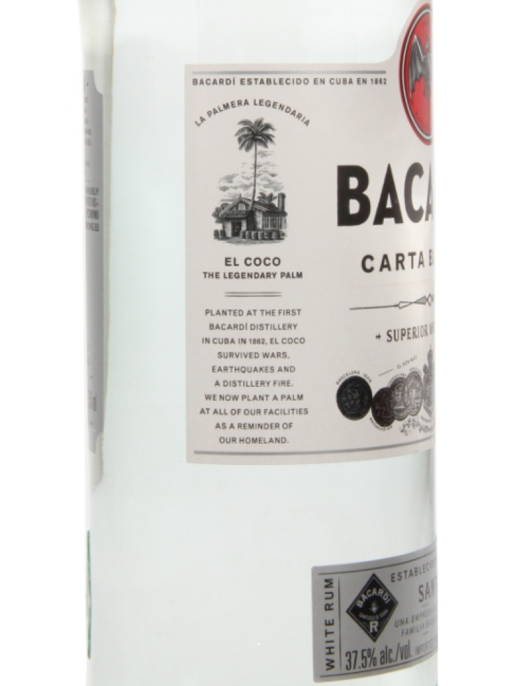 Sobre: Bacardí Carta Blanca é produzido meticulosamente por regras dos Maestros de Ron Bacardí. Este rum têm ligeiras notas de baunilha, desenvolvido em barris de carvalho, perfeito para cocktails.