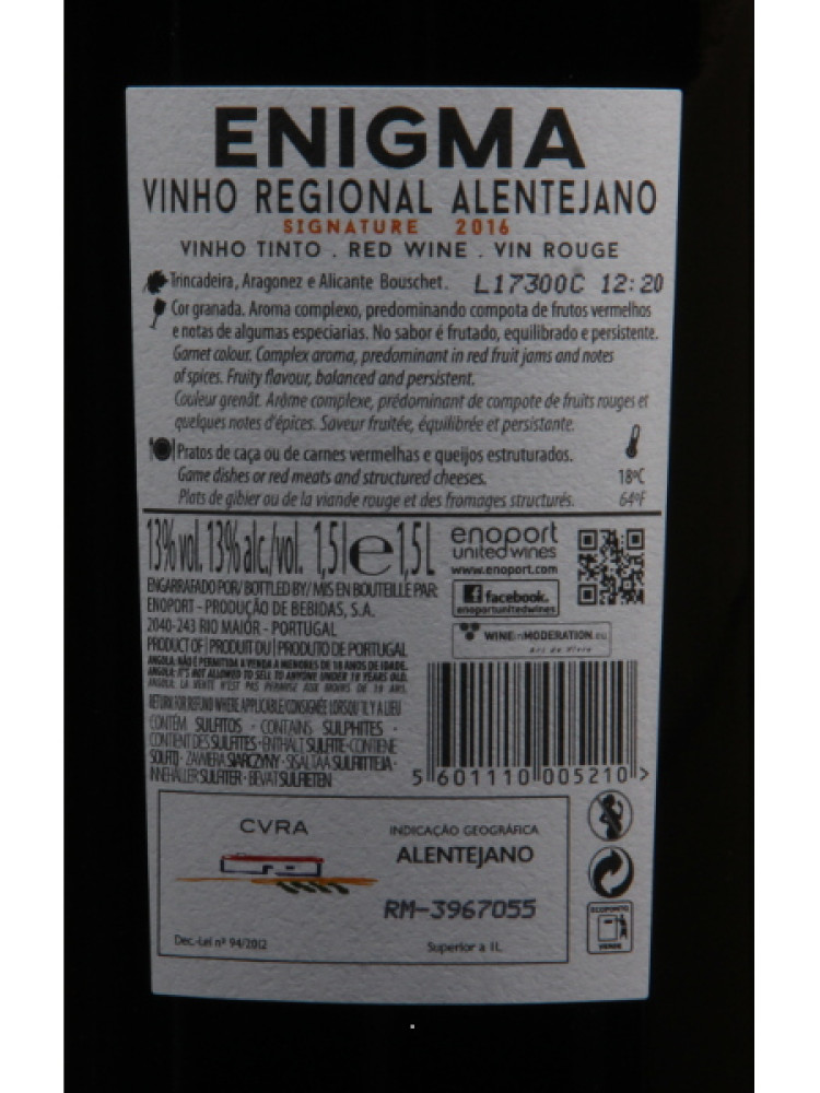 Partilhar Enigma Signature 1,5L Tinto 2016 :