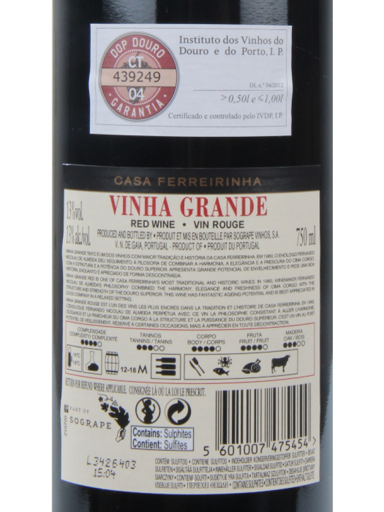 Ovinho Vinha Grande Tinto é um vinho do Douro, clássico e intenso, de carácter bem marcado, que reflecte toda a riqueza e qualidade da região na criação dos melhores vinhos de lote. Vinha Grande integra a gama de vinhos da Casa Ferreirinha, a casa com maior tradição em vinhos de qualidade no Douro e uma das suas maiores referências mundiais.