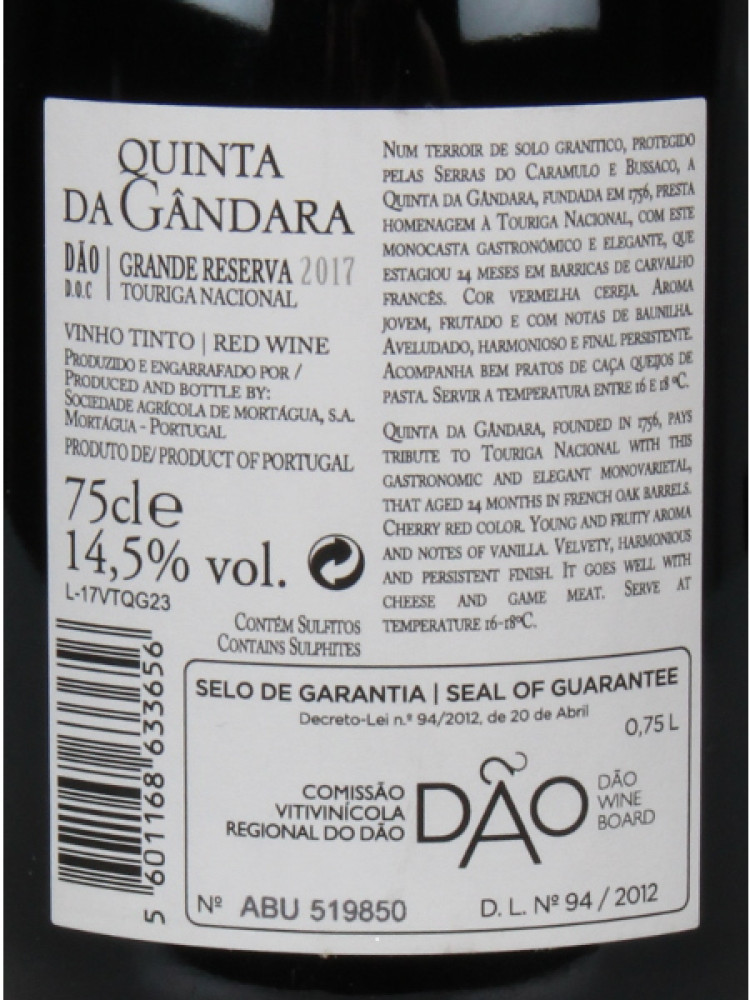 Quinta da Gandara Grande Reserva 2017 Touriga Nacional 0.75 Tinto